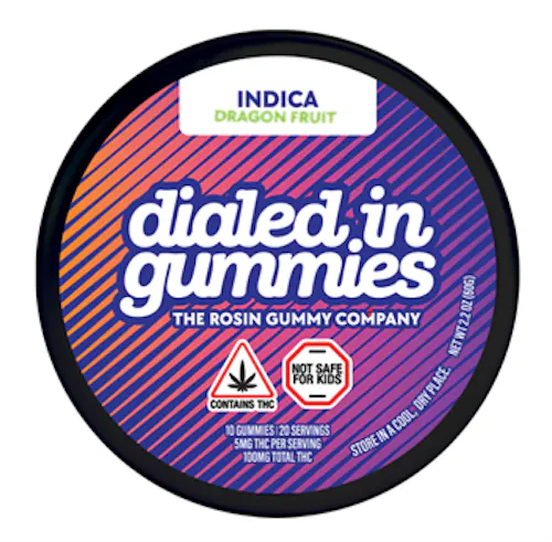 Dialed In’s Dragon Fruit (I) from the Classics line delivers a subtly sweet, tropical dragon fruit flavor paired with premium solventless rosin for a smooth, full-spectrum edible experience. Light and refreshing, this gummy offers a refined fruit profile balanced with consistent craftsmanship.