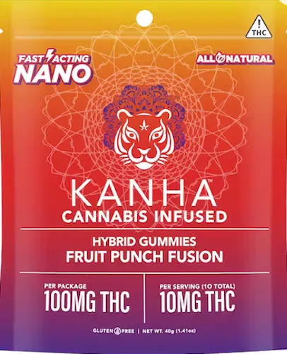 KANHA Fruit Punch Fusion gummies are a fresh blend of fruit flavors infused with hybrid terpenes. The top 3 terpenes are A-Bisabolol, A-Pinene, and B-Caryophyllene, which may put you somewhere in the middle of uplifted and relaxed. Fast-acting KANHA gummies are infused with VESIsorb nanotech to increase the absorption of cannabinoids and provide effects in 5-15 minutes. Widely considered the best-tasting in the industry, KANHA gummies are made with real fruit, all-natural ingredients and contain no major allergens.